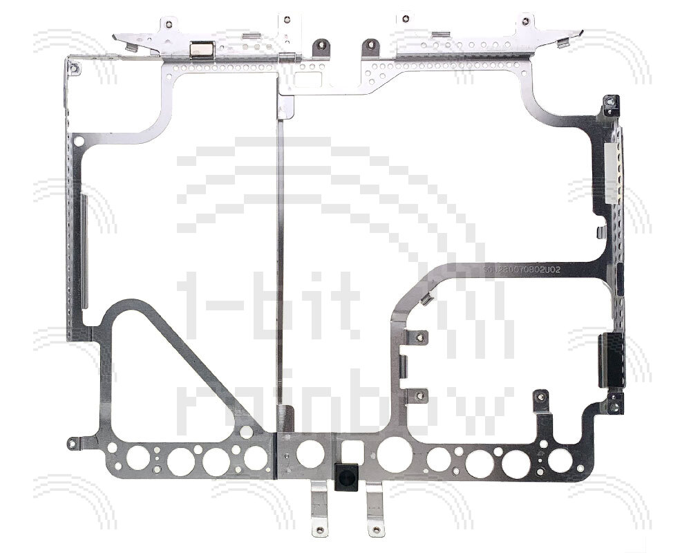 Original Apple display chassis for all models of iBook G3 Clamshell that have an IBM LCD. It includes the sleep magnet and the two black rubber blocks that support the sleep light and LVDS connector. The inverter board, LCD panel, sleep light board, and airport antenna board all mount onto this chassis.