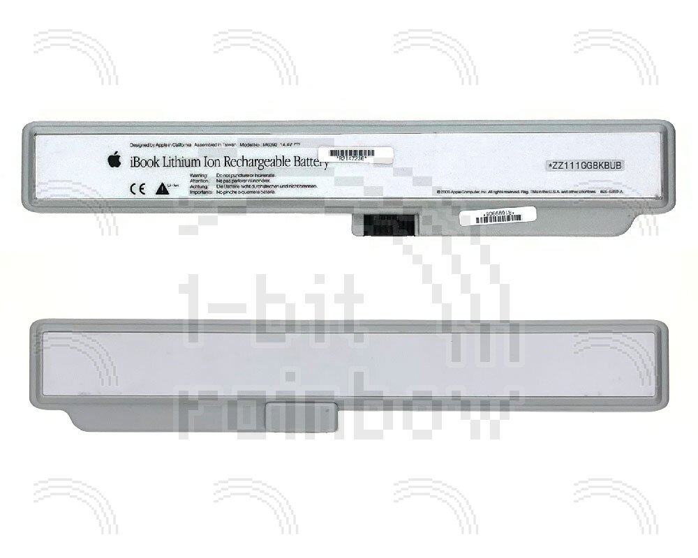 Original Apple battery for all FireWire models of iBook G3 Clamshell. Cosmetically different but functionally interchangeable with the Original iBook Clamshell battery.