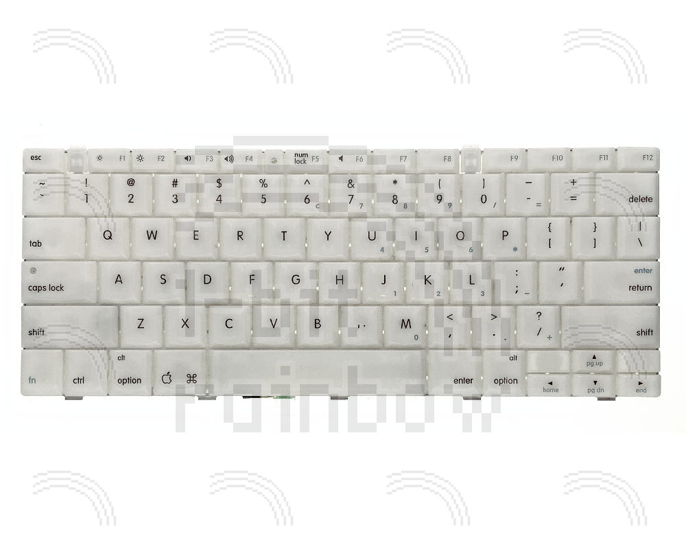 Original Apple, fully tested internal US format keyboard for all models of FireWire iBook G3 ClamShell. The only difference to the US version is the hash symbol over the 3 instead of pound. The FireWire model keyboards are all the same and not colour coded to the iBook colour. They are more opaque than the original Clamshell models but are functionally interchangeable.