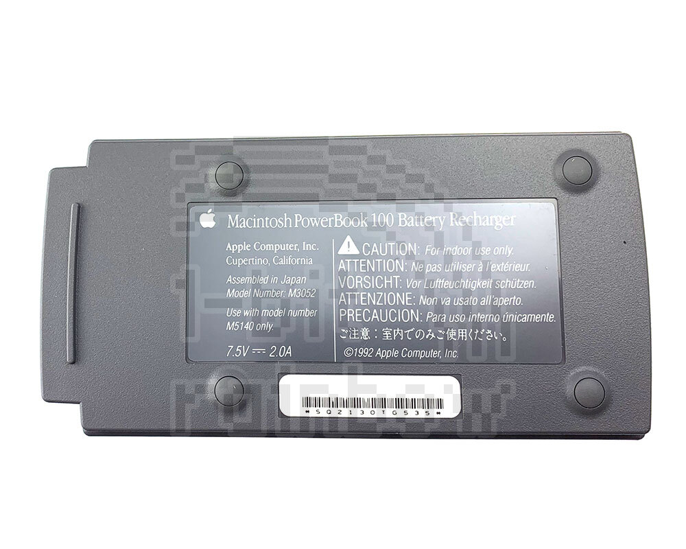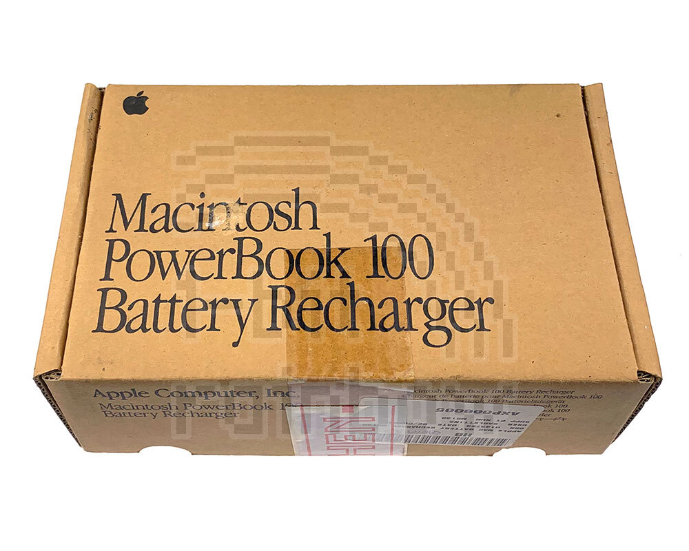 Brand new boxed original service spare Apple external battery charger for the PowerBook 100. This connects to a standard PowerBook 100 series charger and allows two batteries to be recharged outside of the laptop. Box may be tatty.