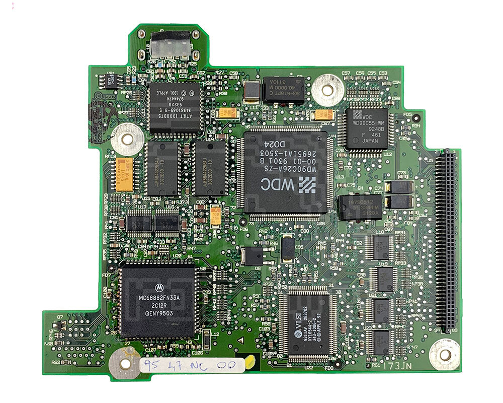 Original Apple, fully tested daughterboard for the PowerBook 165c model only. This board consists of a 33MHz Motorola 68030 microprocessor with a Motorola 68882 coprocessor. This board also contains the external video port (Mini-15). Although the board is almost identical to the 180c daughterboard and carries the same part number, the 165c board has an additional Western Digital chip providing support for FSTN LCD panels. This chip is missing from the 180c board.