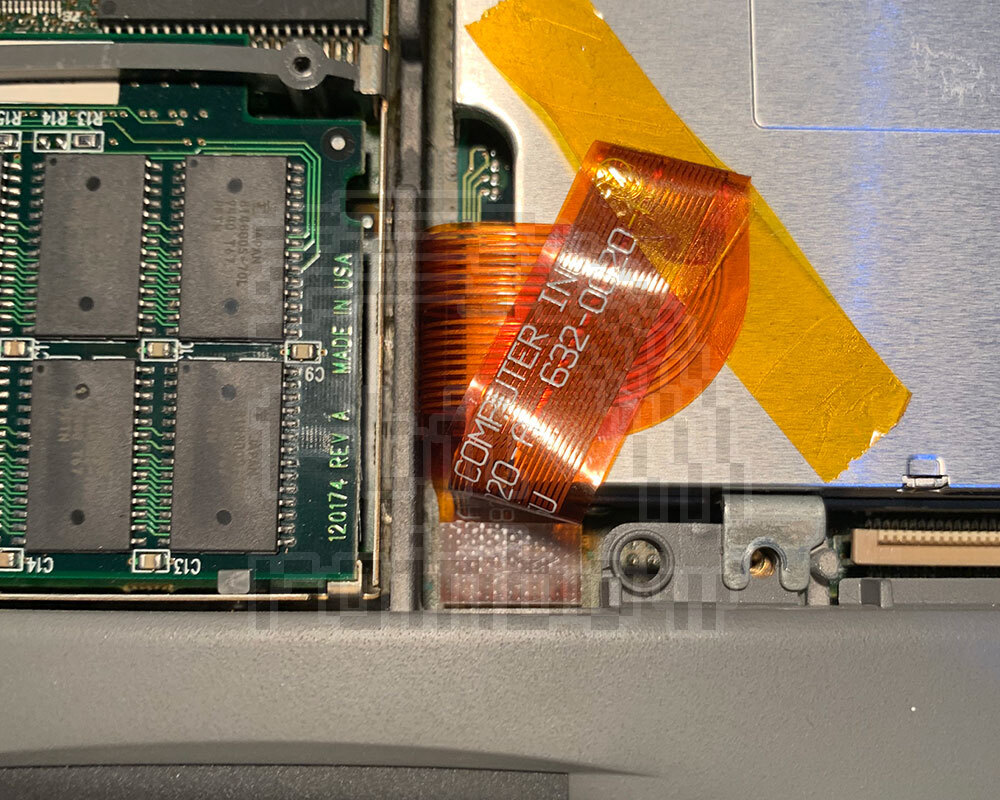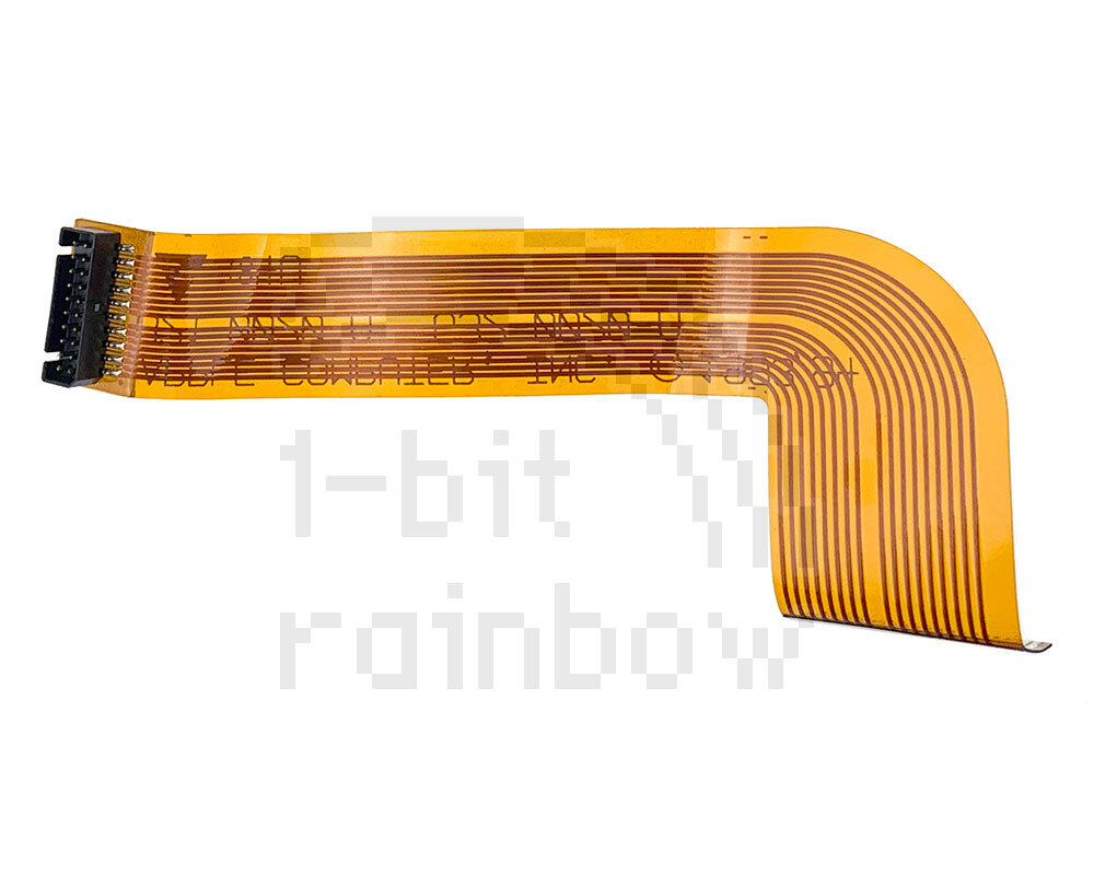 Fully tested Apple original floppy flex drive cable for the PowerBook 500 series. Note that this flex cable is folded in an unusual way when fitted and care should be taken to ensure the flex is orientated correctly with the metal contacts facing upwards at the floppy drive end. See images.