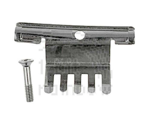 Original Apple EMI shield/bracket and screw for the PowerBook 1400 series. This metal shield clamps the display and inverter cables in place between the clutches.