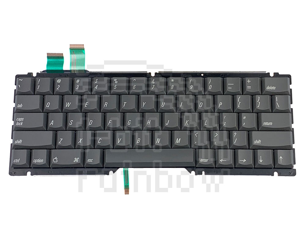 Original Apple, fully working, US layout internal keyboard module for the PowerBook 1XX series excluding the 100 and 190. This keyboard is functionally interchangeable with the keyboard that shipped on the PowerBook 150 although that keyboard used a different keycap mechanism and slightly different keycap plastic.
